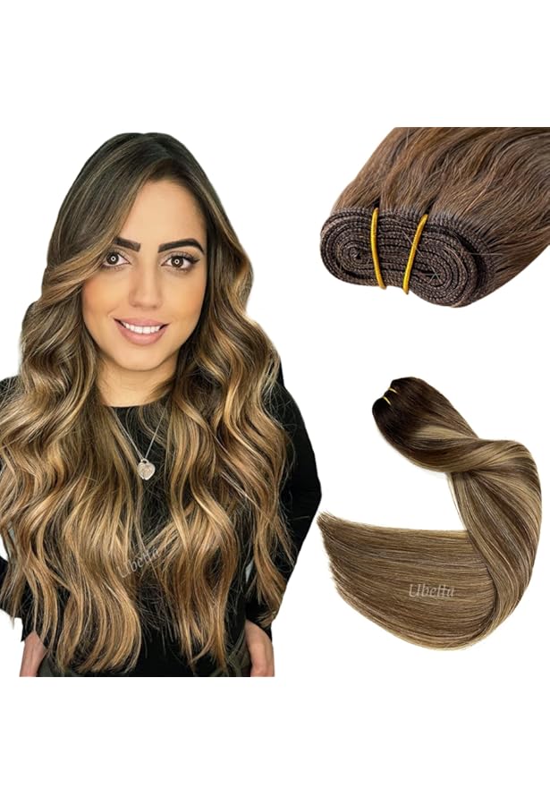 Amazon Com 24inch Sew In Hair Extensions Real Human Hair Weft Hair Extensions Human Hair Bundles 120g Ombre Balayage Brown To Golden Brown Highlighted Blonde Hair Extensions Sew In Human Hair For Women
